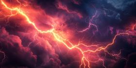 A Sky Torn Asunder: Lightning Bolts Tear Through a Fiery Sky, Illuminating the Dark Clouds with an Electrifying Glow