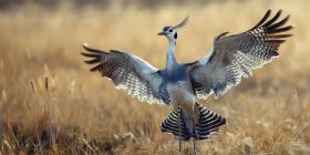 A Majestic Presence: A Kori Bustard surveys its domain, its regal stance and striking plumage commanding attention against the backdrop of a vast African landscape