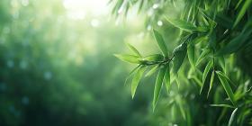 A lush bamboo thicket bathed in warm sunlight, showcasing vibrant green leaves and a sense of tranquility
