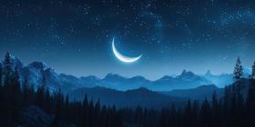 Celestial Serenade: A crescent moon hangs serenely in a sky awash with stars, casting a magical glow over the tranquil ocean