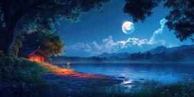 Celestial Serenade: A crescent moon hangs serenely in a sky awash with stars, casting a magical glow over the tranquil ocean