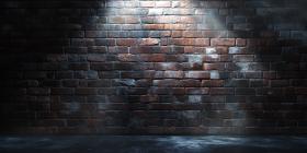 Spotlight on Brick: A beam of light pierces the darkness, illuminating a textured brick wall with a dramatic spotlight effect