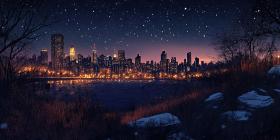Celestial Serenade: A crescent moon hangs serenely in a sky awash with stars, casting a magical glow over the tranquil ocean