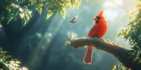 Crimson Majesty: A vibrant cardinal perches gracefully on a bare branch, its fiery plumage contrasting against the muted hues of the winter sky