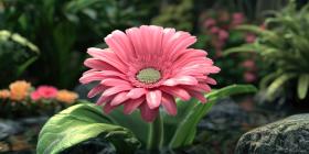 A vibrant pink flower bathed in the warm glow of the setting sun, its delicate petals capturing the light and creating a sense of serenity