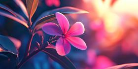 A vibrant pink flower bathed in the warm glow of the setting sun, its delicate petals capturing the light and creating a sense of serenity