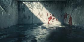 Neon Dreams: A stark concrete room bathed in a mesmerizing glow, where vibrant hues of pink and blue cast an otherworldly aura
