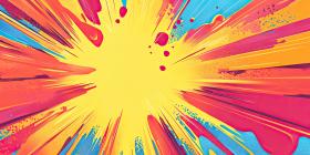 Dynamic Impact: A vibrant explosion of color and motion, reminiscent of a comic book's dramatic action scene, bursts across the page.