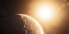 Sunrise from Space: A breathtaking view of Earth from orbit, as the sun rises over the horizon, casting its golden rays across the clouds and continents