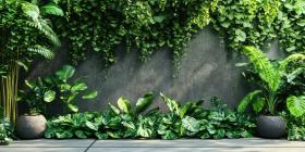 Lush Living Wall: A verdant tapestry of trailing vines and lush foliage cascades down a concrete wall, creating a tranquil oasis of greenery