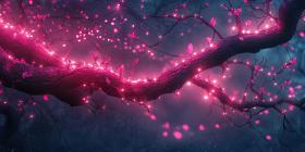 Enchanted Glow: Twinkling lights adorn bare branches, casting a magical spell over the winter landscape with a warm, ethereal glow