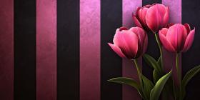 Radiant Blooms: A pair of delicate pink tulips bask in the warm glow of sunlight, their petals illuminated with a vibrant radiance