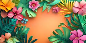 Tropical Tapestry: A vibrant arrangement of paper flowers and lush leaves, creating a whimsical and inviting tropical paradise