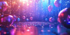 A Night of Revelry: Colorful balloons dance under a shower of confetti, illuminating a festive scene with vibrant hues and a celebratory spirit