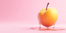 Juicy Drips: A plump apricot, glistening with moisture, drips a tantalizing stream of juice onto a vibrant pink surface
