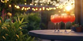 Festive Fizz: Sparkling cocktails gleam under a canopy of colorful lights, promising a night of celebration and good cheer