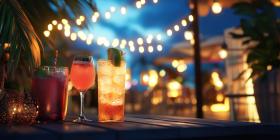 Festive Fizz: Sparkling cocktails gleam under a canopy of colorful lights, promising a night of celebration and good cheer