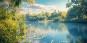 Serene Waters: A tranquil pond surrounded by lush greenery, inviting moments of peace and reflection