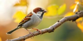 Feathered Friend: A common sparrow, perched on a weathered post, surveys its surroundings with a curious gaze, a reminder of the simple beauty found in everyday nature