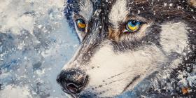 Eyes of the Wild: A wolf's piercing gaze, captured in a swirl of blues and grays, conveys a sense of power and untamed spirit