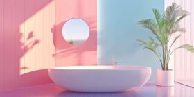 Sunset Sanctuary: A serene bathroom bathed in warm hues, with a freestanding tub overlooking a breathtaking sunset, inviting moments of tranquility and reflection