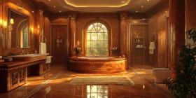 Sunset Sanctuary: A serene bathroom bathed in warm hues, with a freestanding tub overlooking a breathtaking sunset, inviting moments of tranquility and reflection
