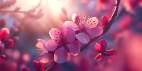 Dawn Embrace: Delicate Pink Blossoms Bathed in the Warm Glow of Sunrise