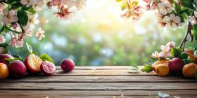 Springtime Bounty: Freshly Picked Apples and Delicate Blossoms Grace a Rustic Wooden Table, Basking in Warm Sunlight