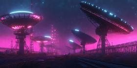 Cosmic Road: A Path Illuminated by Red Lanterns, Leading Through a Snowy Forest Towards a Starry Night Sky