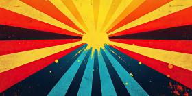 Retro Sunburst: A Vibrant Digital Landscape with a Neon Pink Sun Casting Shadows on a Dreamy Mountain Range