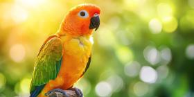 Vibrant Sun Conure: A Colorful Parrot Perched on a Branch, Basking in the Warm Sunlight