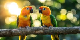 Vibrant Sun Conure: A Colorful Parrot Perched on a Branch, Basking in the Warm Sunlight