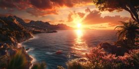 Golden Hour Awakening: A Ray of Sunlight Pierces the Darkness, Illuminating Delicate Flowers in a Mystical Meadow