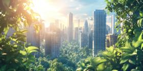 Golden Hour Metropolis: A Cityscape Bathed in the Warm Glow of a Sunset, Casting Long Shadows and Illuminating the Urban Skyline