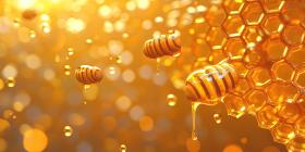 Golden Nectar: A close-up of a honeycomb, dripping with golden honey, evokes the sweetness of nature's bounty
