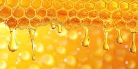 Golden Nectar: A close-up of a honeycomb, dripping with golden honey, evokes the sweetness of nature's bounty