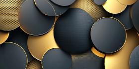 A Cosmic Tapestry: Interlocking circles of black and gold, adorned with shimmering accents, evoke a sense of celestial elegance and cosmic wonder