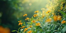 A Sunlit Symphony: A vibrant field of yellow flowers basks in the warm glow of the morning sun, creating a breathtaking scene of natural beauty and tranquility