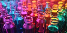 A Spectrum of Possibilities: A vibrant array of colorful vials, bathed in a kaleidoscope of light, hints at a world of scientific discovery and limitless potential