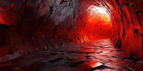 A Descent into the Abyss: A narrow, red-tinged tunnel, illuminated by an ominous glow, beckons the intrepid explorer into the depths of an unknown and possibly dangerous realm