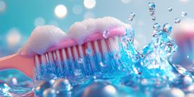 A Bubbly Cleanse: A toothbrush, laden with foamy toothpaste, emerges from a shower of bubbles, symbolizing the importance of a sparkling smile and daily oral hygiene