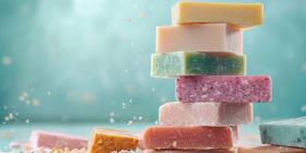 A Lather of Luxury: A vibrant stack of artisan soaps, crafted with natural ingredients and infused with delightful scents, beckons with promises of a pampering and rejuvenating experience