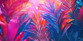 A Tropical Dreamscape: A vibrant explosion of colors, as tropical leaves are bathed in a kaleidoscope of light, creating a surreal and captivating scene