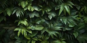 A Verdant Tapestry: Sunlight filters through a lush canopy of emerald green leaves, creating a mesmerizing tapestry of light and shadow in the heart of a tropical paradise