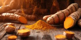 A Golden Treasure: Vibrant turmeric roots and a mound of golden powder, showcased against a rustic wooden backdrop, highlight the rich hues and potential benefits of this ancient spice