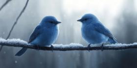 A Love Song in Blue: Two vibrant bluebirds, perched side-by-side on a branch, exchange a tender gaze, their vibrant plumage a testament to the beauty of nature