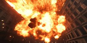 The Birth of Chaos: A cataclysmic explosion erupts in a universe of chaos, sending a shower of debris and fiery fragments into the void of space