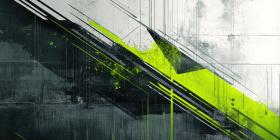 Urban Graffiti: A bold, abstract mural, painted with vibrant green and black hues, transforms a weathered concrete wall into a canvas of dynamic energy and urban expression