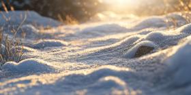 Winter's Embrace: Sunlight Filtering Through Snow-Dusted Branches in a Magical Winter Scene