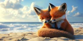 Coastal Dreams: Two Fox Kits Napping on the Beach